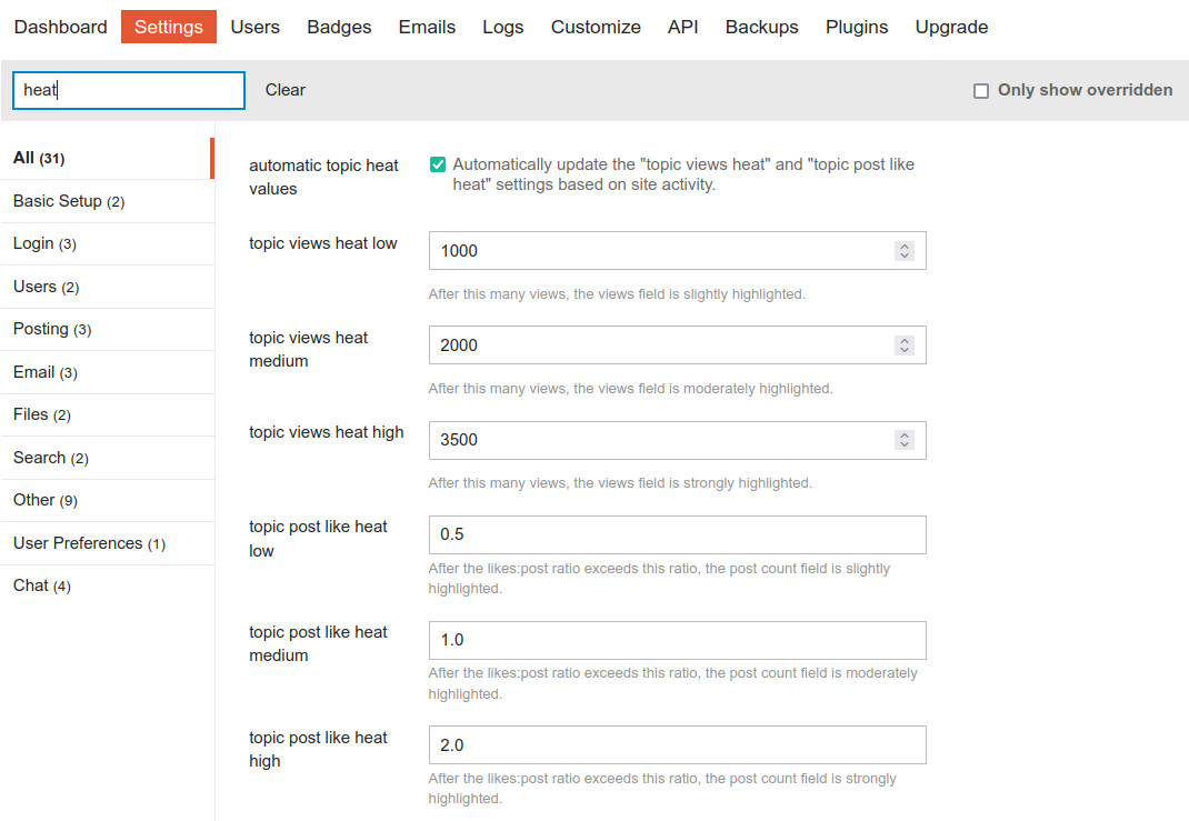 Discoursen asettaa omalla algoritmillaan “heat-värejä” ketjun katselukertoihin ja vastausten määriin.