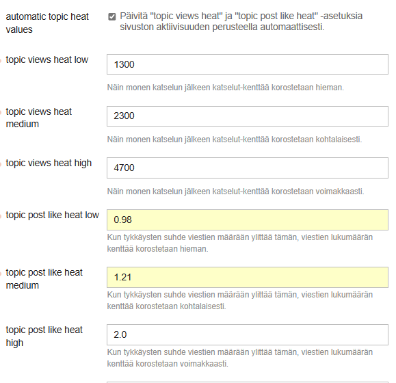 Jep. Löysin nuo ohjeet Discoursen keskustelualueelta itsekin. Mutta… en tiedä onko niitä aihetta mennä muuttelemaan. Jos aikaa riittää, niin värikoodit voisi purkaa auki.